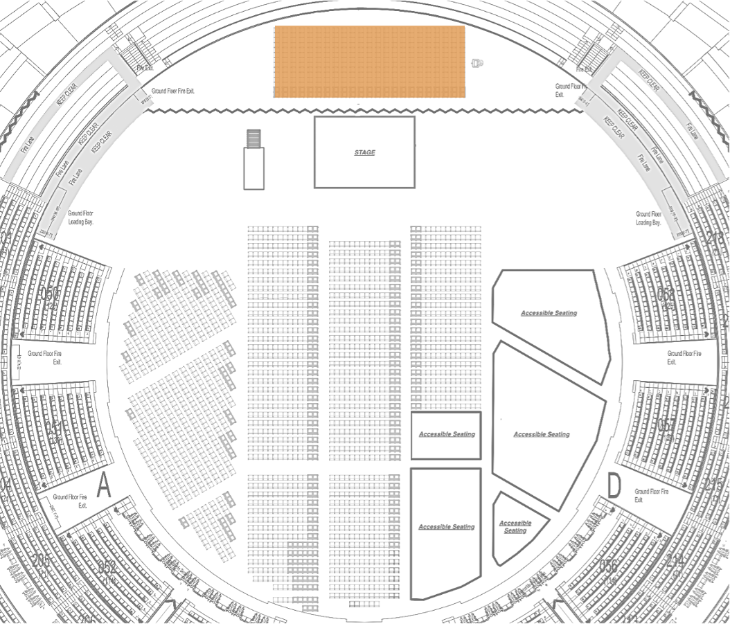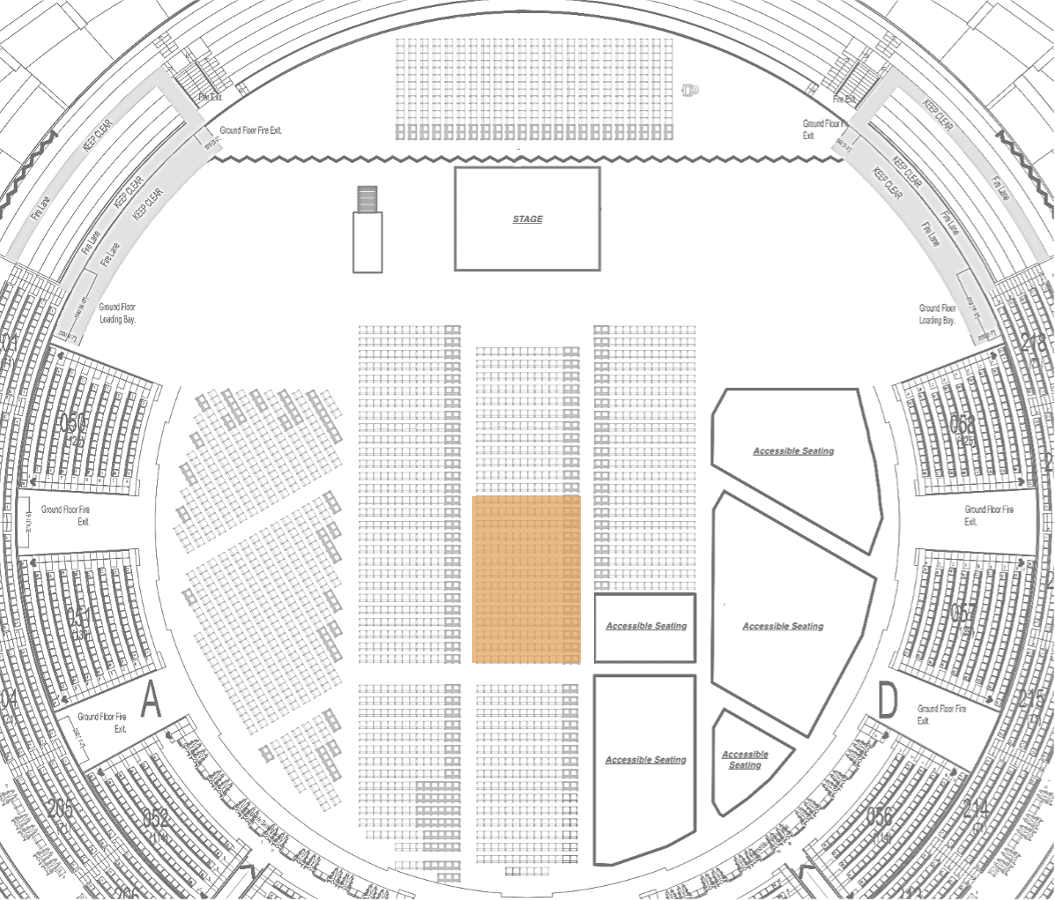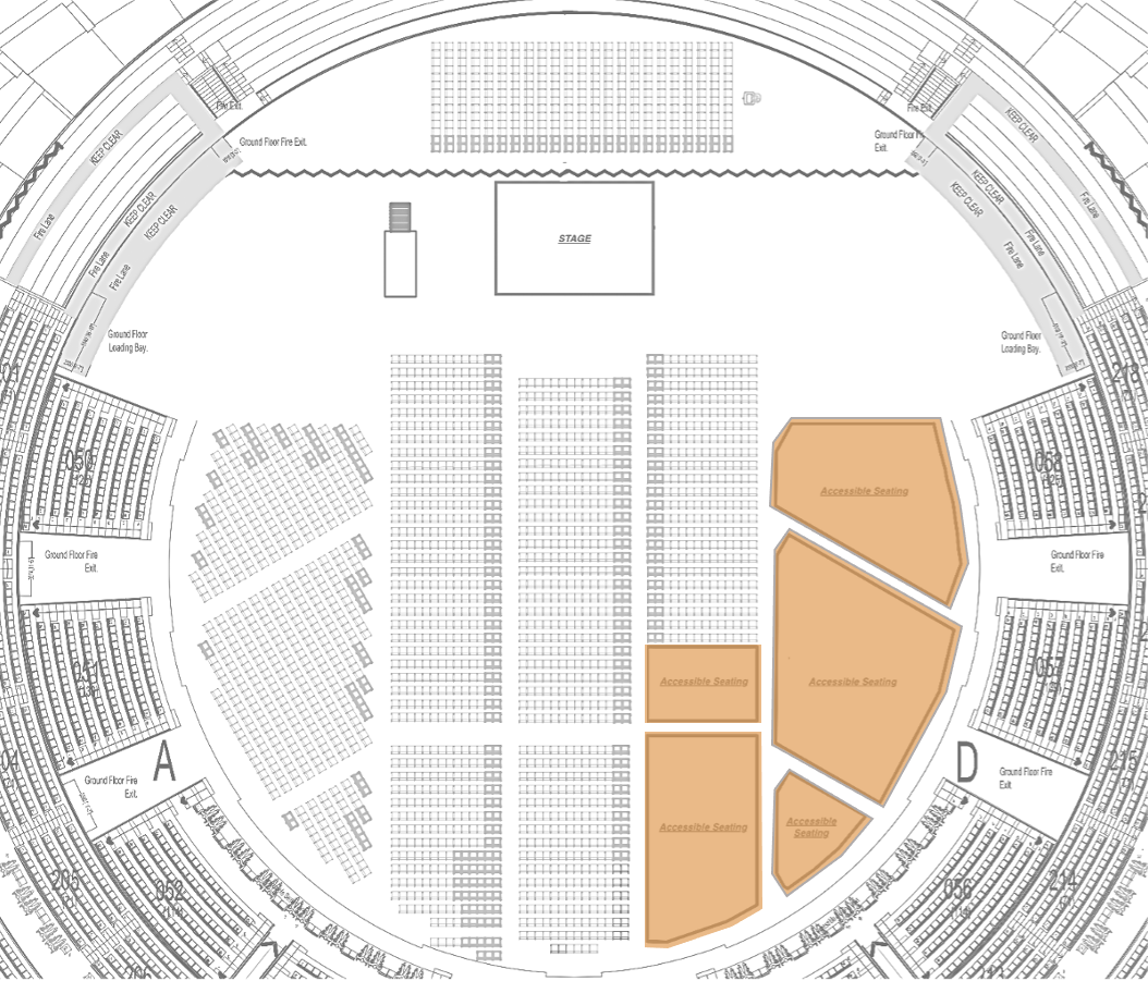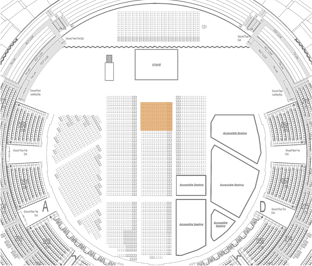 A section to the right-hand side of the stage has been designated for wheelchair users, including seating for marriage mates and primary caregivers.